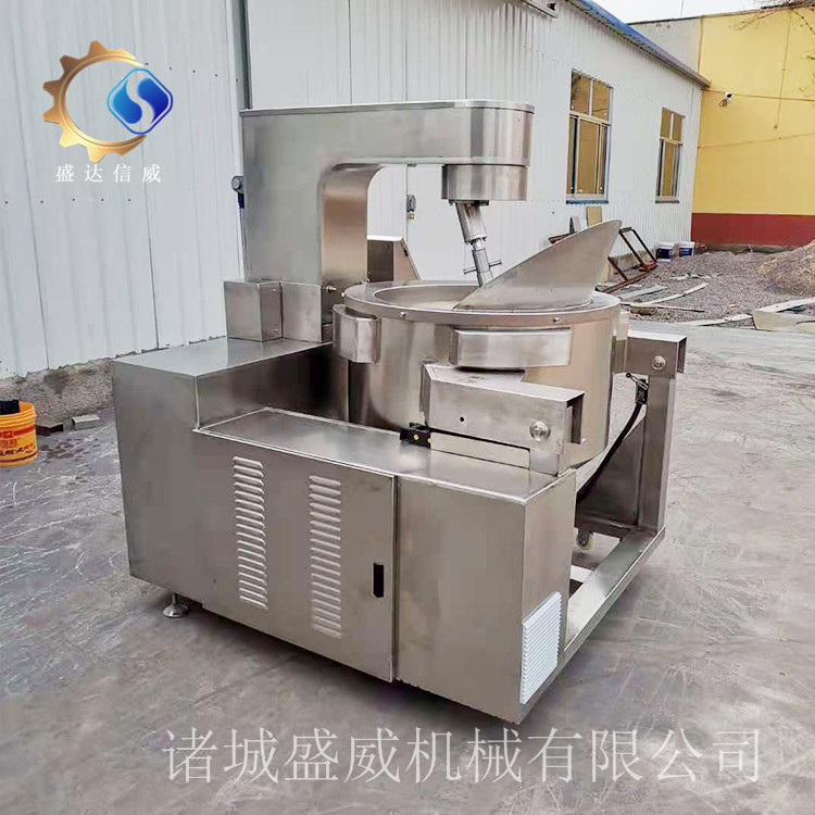 该设备主要由锅体、架体、搅拌系统、加热系统、调速传动装置、搅拌轴、锅体翻转系统等组成,采用一次冲压成型的半球形不锈钢锅体,采用蒸汽、液化气、天然气等加热形式,搅拌方式采用特殊的倾斜式传动,使用的行星式搅拌器与锅体充分接触,实现传动公转与自转的不整数传动比,使锅内无搅拌死角。使用先进的传动与密封结构,使传动部分与锅内洁净、卫生。采用变频调速动力,运行更平稳。采用液压升降,翻锅运料,免拆装搅拌器,节省人力,降低劳动强度,是性能优良的食品加工设备。