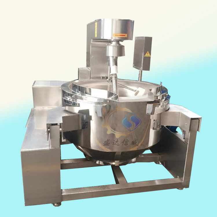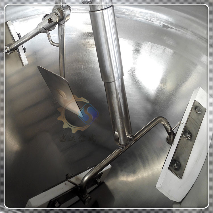 5、搅拌方式:搅拌方式采用特殊的倾斜式传动,使用的行星式搅拌器与锅体充分接触。搅拌系统采用自转公转相结合的方式,其传动比为不整数传动比,保证锅内无搅拌盲点。