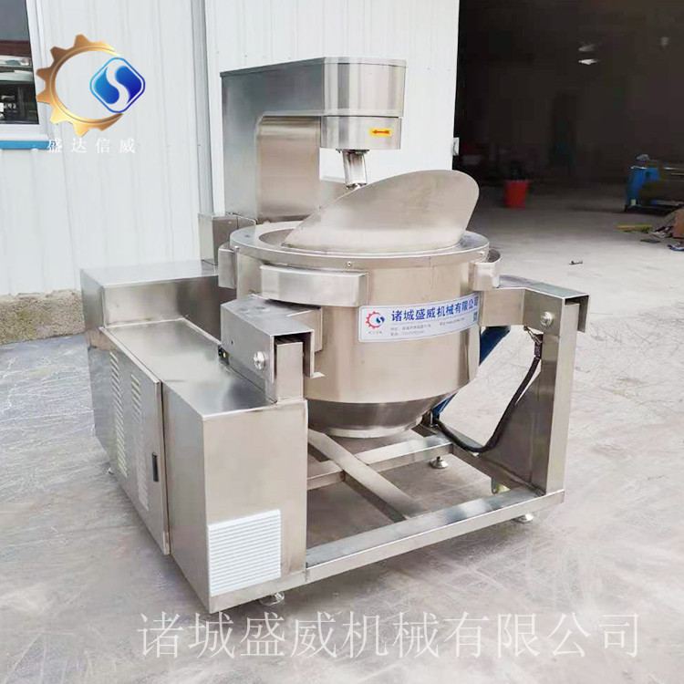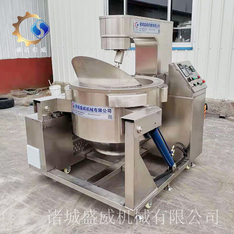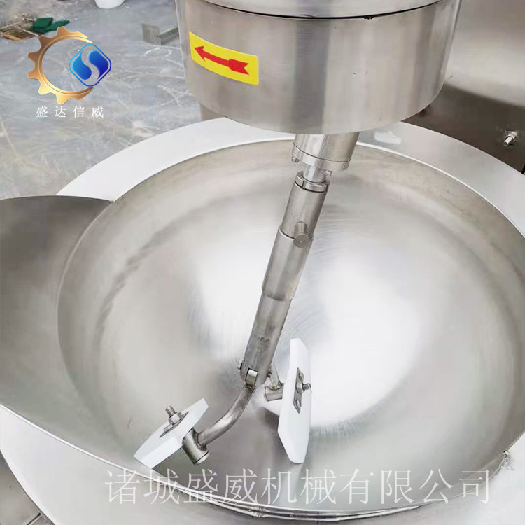本机吸收借鉴国际先进技术,结合众多食品厂家的专家建议,自主研发的一种新型双向刮底搅拌夹层锅,本锅体搅拌部分采用一次性成型的不锈钢锅体,保证了锅体的平衡光滑,采用蒸汽、液化气、天然气等加热方式,刮边采用弹簧式,刮底采用自重式,使锅体与搅拌叶片紧密接触,使物料搅拌均匀,不粘锅,动力采用日本无机调速器与涡轮、蜗杆,减速机的完美结合,传动部分公转自转的不整数传动比,使锅内搅拌无死角,使用先进的传动与密封结构,使传动部位与锅内洁净、卫生,本机采用液压式翻臂,翻锅出料,省力、省时、省工、不失为性能优良的生产设备。