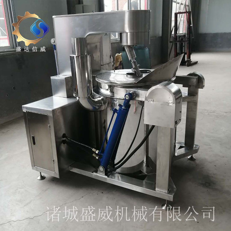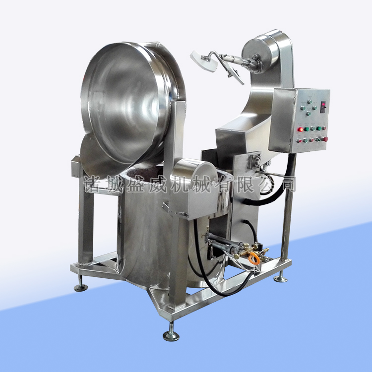 本机吸收借鉴国际先进技术,结合众多食品厂家的专家建议,自主研发的一种新型双向刮底搅拌夹层锅,本锅体搅拌部分采用一次性成型的不锈钢锅体,保证了锅体的平衡光滑,采用蒸汽、液化气、天然气等加热方式,刮边采用弹簧式,刮底采用自重式,使锅体与搅拌叶片紧密接触,使物料搅拌均匀,不粘锅,动力采用日本无机调速器与涡轮、蜗杆,减速机的完美结合,传动部分公转自转的不整数传动比,使锅内搅拌无死角,使用先进的传动与密封结构,使传动部位与锅内洁净、卫生,本机采用液压式翻臂,翻锅出料,省力、省时、省工、不失为性能优良的生产设备。