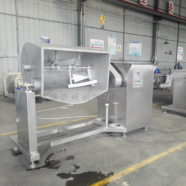 2、横轴卧式可倾式搅拌锅配有螺旋叶羽和搅拌装置,使物料循环流动并使其充分混合。 同时,通过搅拌装置,不断的将已加热物料和未加热物料混合均匀。