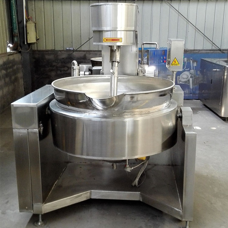 行星搅拌炒锅体为一次冲压成型的半球形不锈钢锅体,采用蒸汽、液化气、天然气等加热形式,搅拌方式采用特殊的倾斜式传动,使用的行星式搅拌器与锅体充分接触,实现传动公转与自转的不整数传动比,使锅内无搅拌死角。使用先进的传动与密封结构,使传动部分与锅内洁净、卫生。采用变频调速动力,运行更平稳。另本机采用液压升降,翻锅运料,免拆装搅拌器,节省人力,降低劳动强度,是性能优良的食品加工设备。