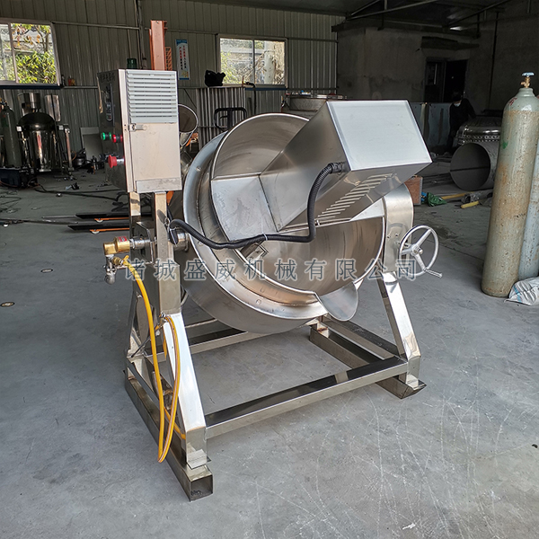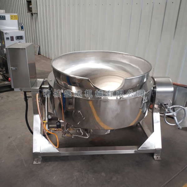 (2)行星搅拌炒锅360度搅拌刮底刮边无死角,液压倾斜倒料,更适合于辣椒酱、香菇酱、火锅底料、方便面酱料、月饼馅料等高粘度的物料的炒制、煮制,还可用于炒菜、熬糖、炒芝麻、炒面、炒豆干等各种食品,加工量大,可连续作业,使用寿命长.
