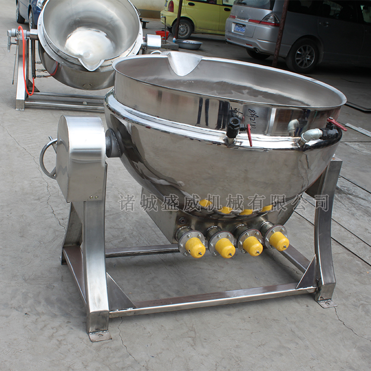 以前物料的炒制熬制工作都是厨师们人工用铲子翻炒熬制的,不仅费时费力还容易造成因翻搅不均匀造成的口感不好、糊锅粘锅等问题。 而金年会机械研制的带搅拌夹层锅正好解决了这一问题,搅拌装置可自动翻转熬制,采用刮底搅拌方式,无死角不糊锅不粘锅,锅体还可自行90°倾斜,方便出料。