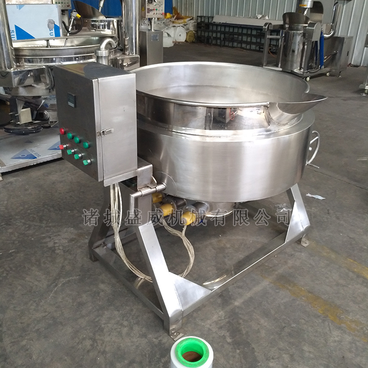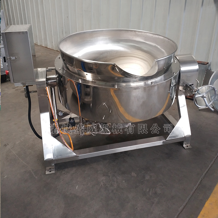 以前物料的炒制熬制工作都是厨师们人工用铲子翻炒熬制的,不仅费时费力还容易造成因翻搅不均匀造成的口感不好、糊锅粘锅等问题。 而金年会机械研制的带搅拌夹层锅正好解决了这一问题,搅拌装置可自动翻转熬制,采用刮底搅拌方式,无死角不糊锅不粘锅,锅体还可自行90°倾斜,方便出料。